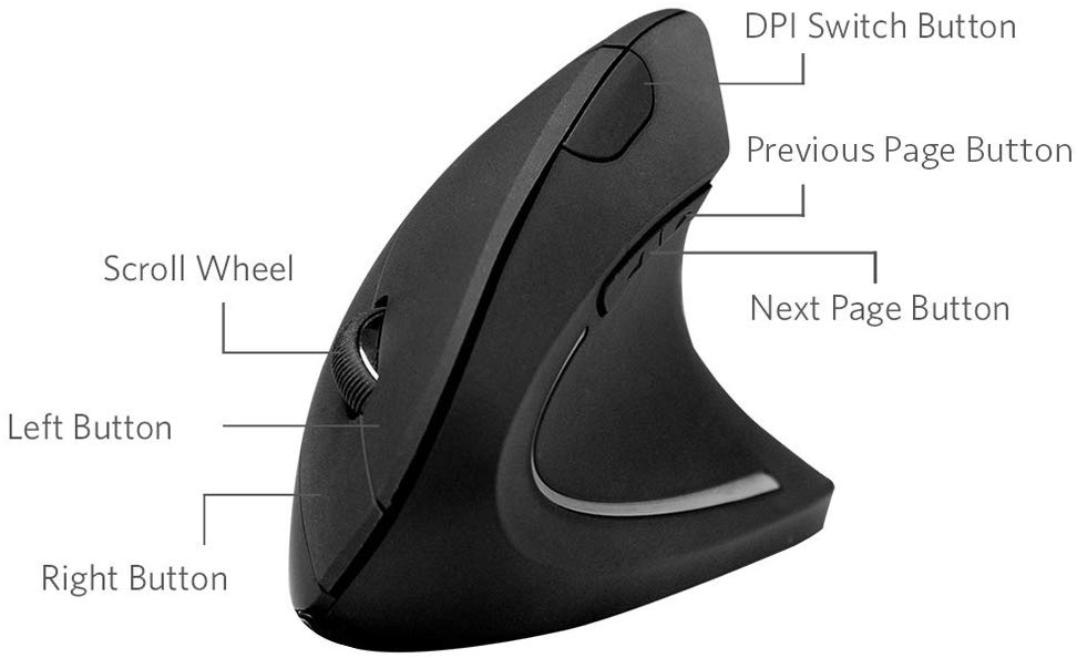 Anker AK-UBA 2.4G Wireless Vertical Ergonomic Optical Mouse, 800 / 1200 /1600 DPI, 5 Buttons for Laptop, Desktop, PC, Macbook – Black