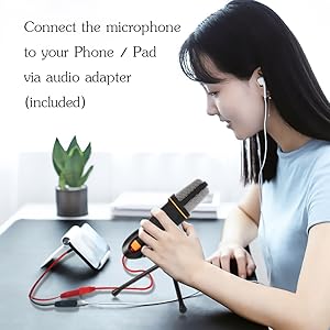 What’s in the package:1pcs x Condenser Microphone 1pcs x Audio Speaker/Headphone Adapter 1pcs x Mini Tripod stand |