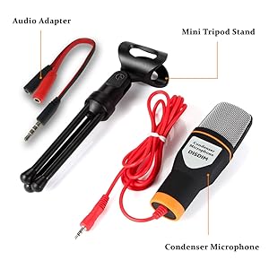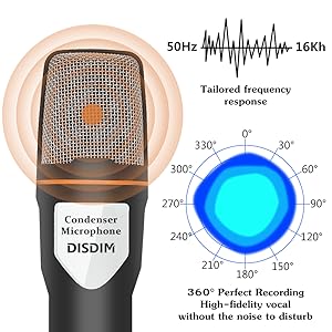 DISDIM Professional Condenser Sound Podcast and Recording Microphone with Home Studio Mic Stand is simple but high quality we bring to you, it could be satisfied for video conference, audio recording in home stereo, chatting. With high quality condenser microphone chip aimed at increasing sensitivity and filtering out background noises for clearer and louder sound.
