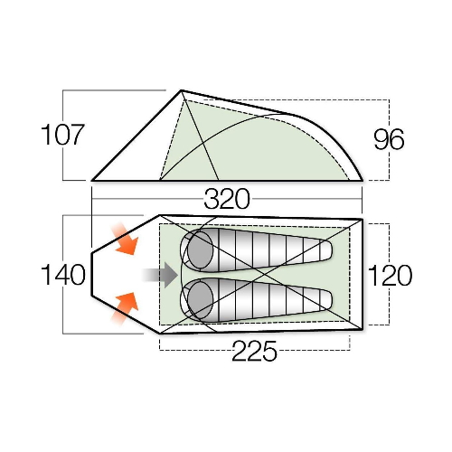 The tent bag has an oversized opening to ensure quick and easy packing. The pack size can be controlled further by tightening or releasing the compression straps.